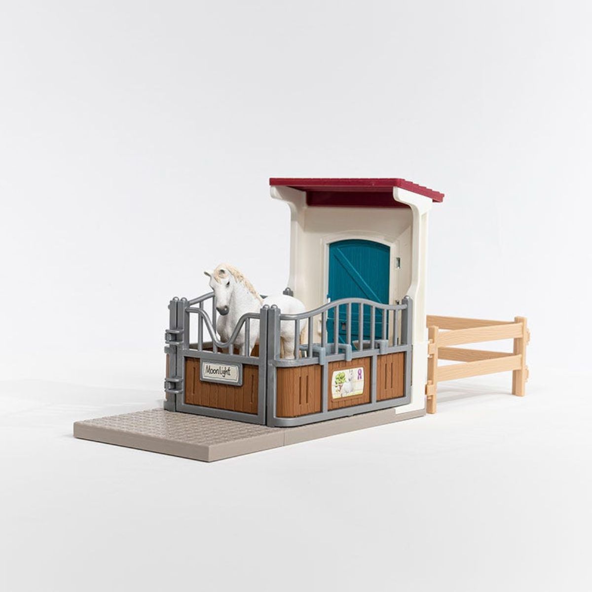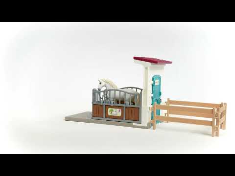 There's no better place for horses to get "R&R" than the Horse Stall Extension from Schleich® Horse Club. Your horses can chow down at the feed rack and quench their thirst at the watering trough. Be sure they get enough to eat...they'll need lots of energy for wherever your play adventures lead. Includes an English Thoroughbred figurine, horse stall, drinking trough, paddock fencing, and a hay rack.