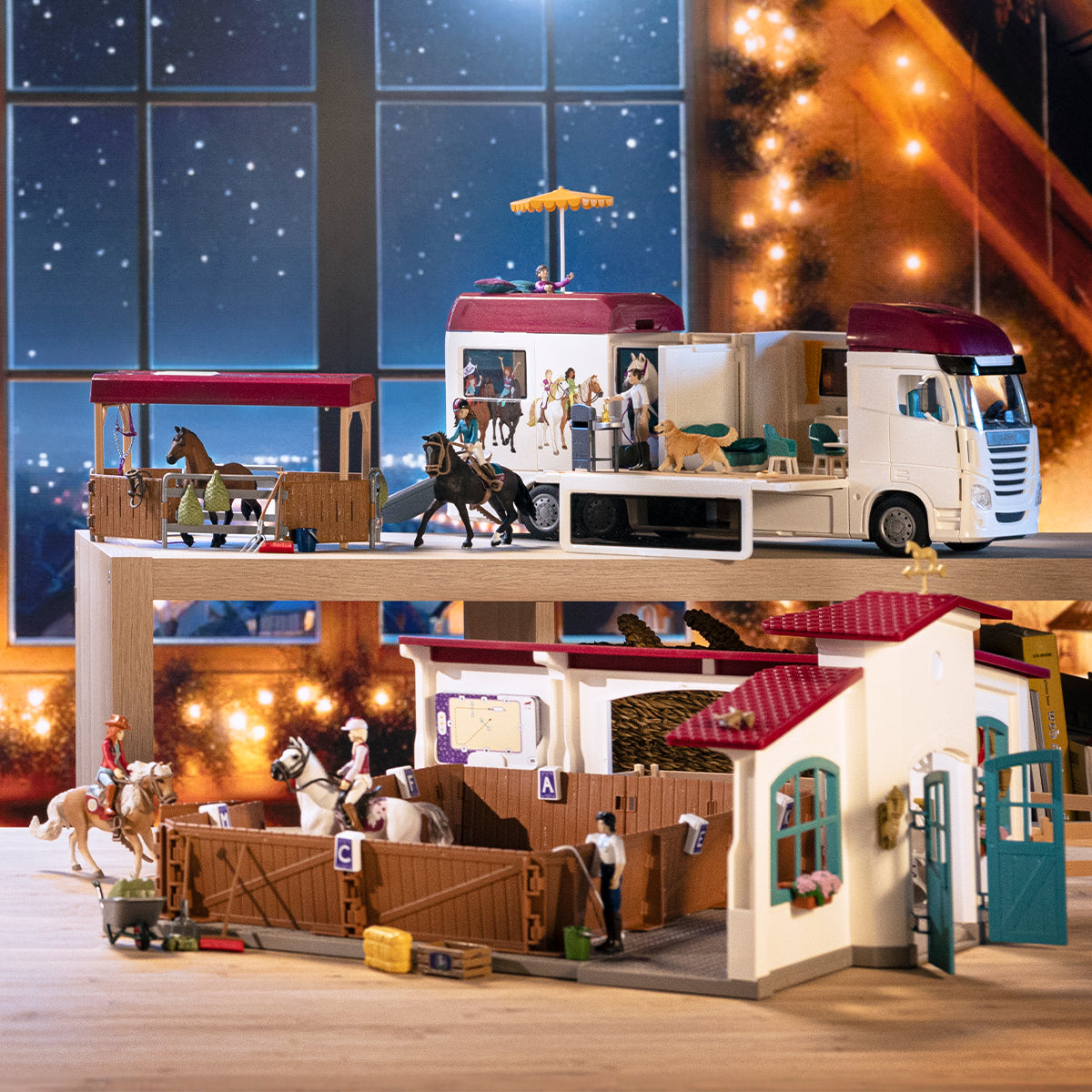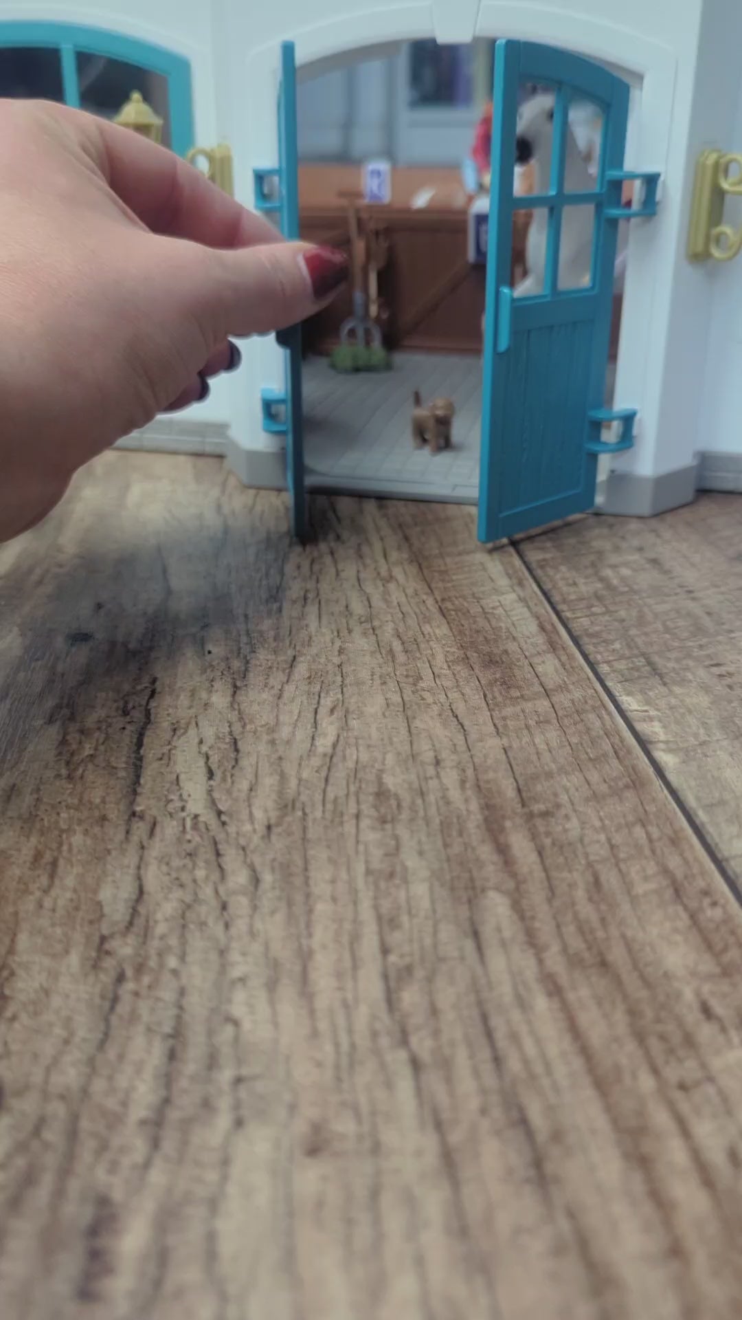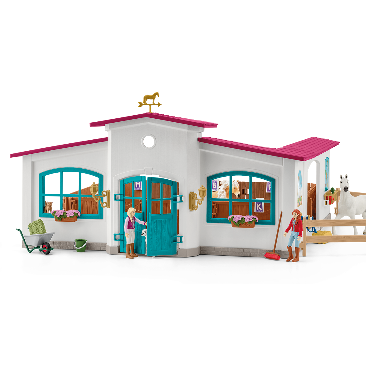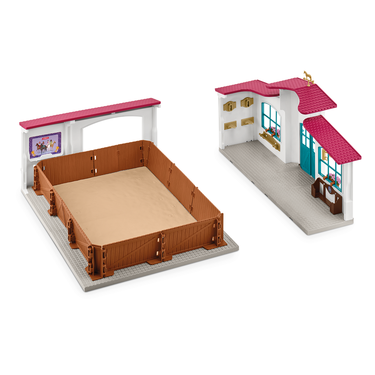 In the riding hall everything is prepared for vaulting and show jumping. There are obstacles in different degrees of difficulty and flashcards with many different dressage movements and tasks to try out. So it never gets boring. After training, the horses are hosed down with water and groomed. Of course, there's a crunchy apple as a reward.
