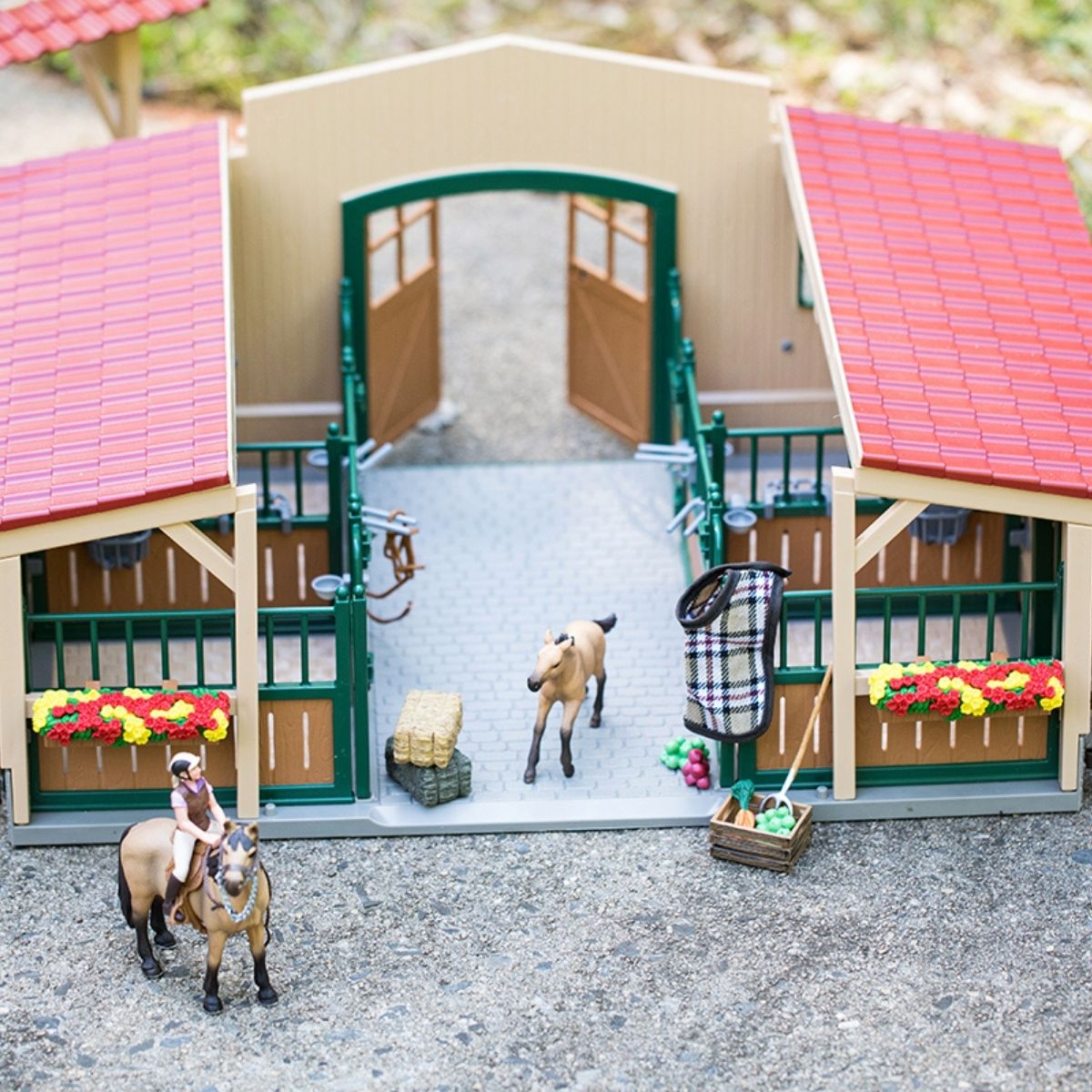 Stable with horses and accessories
